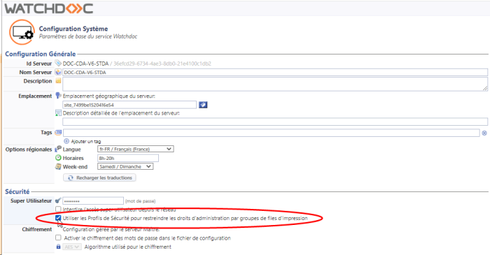 accédez à l'interface web d'administration de Watchdoc en tant qu'administrateur ;