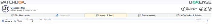 retournez dans l'interface de configuration des files d'impression (Menu principal, section Exploitation, Files d'impression, emplacements, groupes de files & pools, onglet Files d'impression) ;