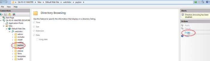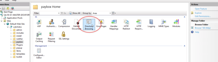 sur le site web Watchdoc, à l'aide de IIS Manager®,