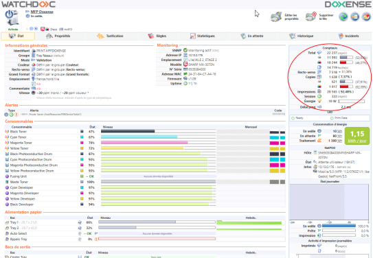 Nom de la capture SNMP (aux formats .bin et .txt), ainsi qu'une capture d'écran (ou photo) des compteurs du périphérique (au format .jpg).