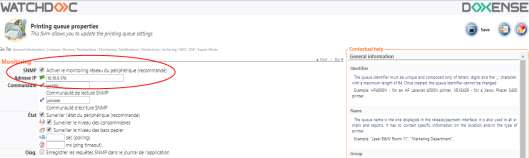 pour vérifier que le contrôle SNMP est activé et configuré sur la bonne adresse I.P. rendez-vous dans l'interface d'administration de Watchdoc ;