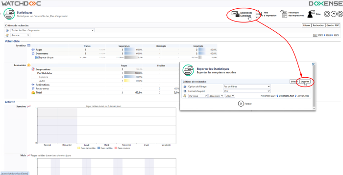 Watchdoc - Statistiques - Exporter les statistiques des compteurs machines