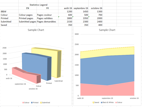 → Les statistiques exportées peuvent être consolidées sous forme graphique dans le logiciel (MS Excel®, en l'occurrence) :