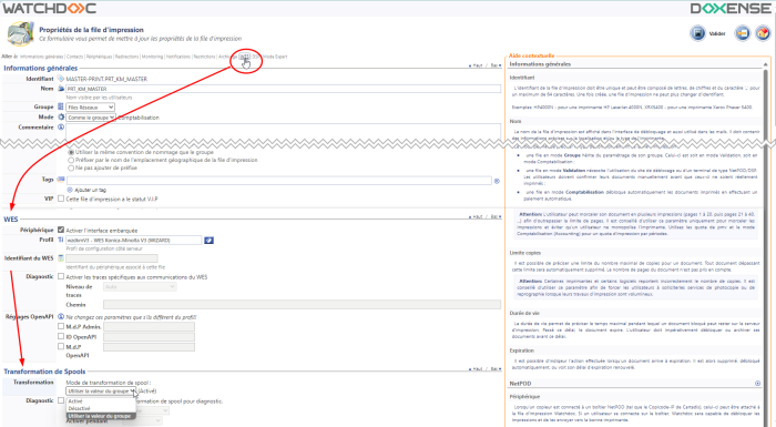 Dans l'interface Propriétés de la file d'impression, cliquez sur le libellé WES.