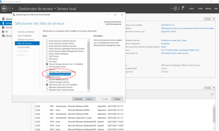 Watchdoc - Activer le rôle serveur d'impression sur un serveur MS Windows 2019