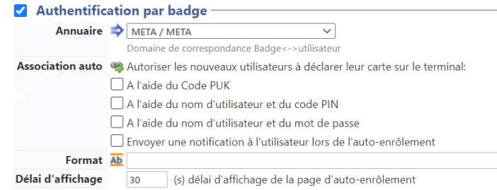 Dans l'interface de configuration du WES, section Authentification > Authentification par Badge,
