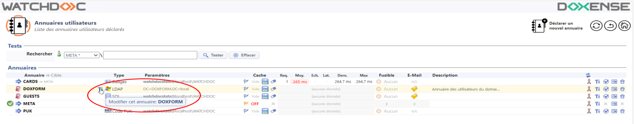 Sélectionnez l'annuaire utilisé dans la liste déroulante (généralement META qui doit obligatoirement appeler l'annuaire LDAP modifié).