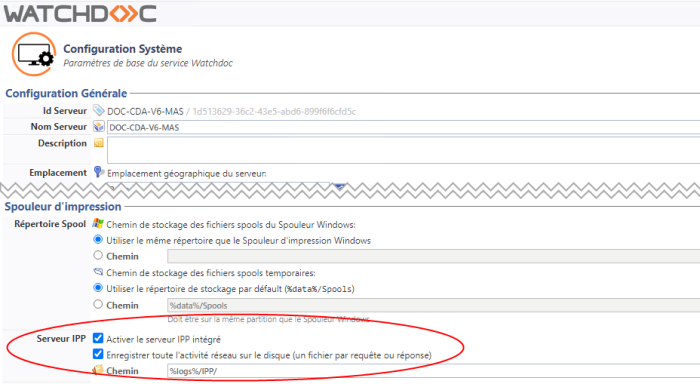 URL : saisissez l'URL sélectionnée dans Watchdoc ;