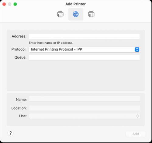 A l'aide de l'URL de la file, créez la file d'impression sur le Mac® grâce à la procédure suivante :