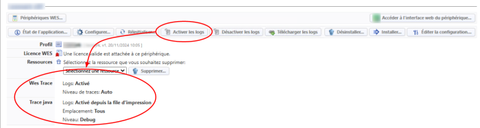Depuis la version 6.1.0.5052, il est également possible d'activer les WES traces (logs) depuis la file d'impression.