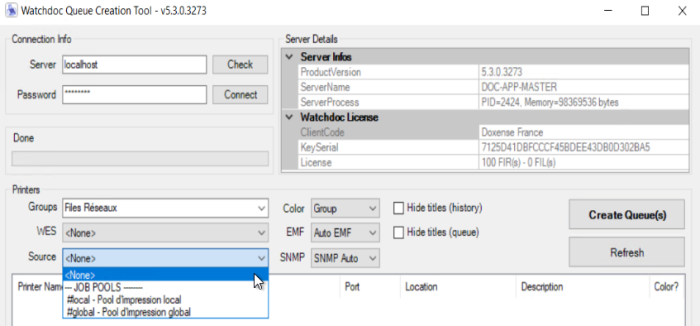 Cette création peut être réalisée unitairement dans Watchdoc ou en masse à l'aide de l'exécutable QueueCreationTool fourni dans le package d'installation de Watchdoc.