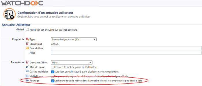 Pour résoudre ce problème, il convient de vérifier le paramètre "Routage" de l'annuaire CARDS :