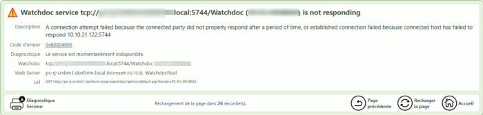 On vient d'installer Watchdoc v. 6.1.0.5221 dans une configuration en mode déporté (serveur Watchdoc et serveur web IIS installés sur deux serveurs différents) et lorsque l'on clique sur le raccourci