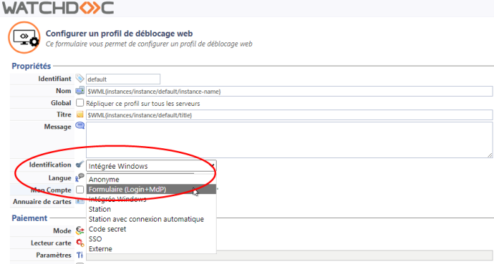 Pour résoudre ce problème, il convient de configurer une instance web Watchdoc comportant un formulaire d'authentification.