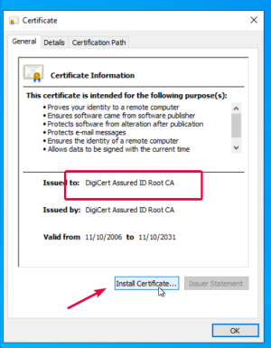 téléchargez le certificat DigiCert Assured ID Root CA de nov. 2026