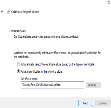 Enregistrez-le dans le dossier Trusted Root Certification Authorities :