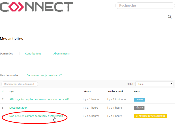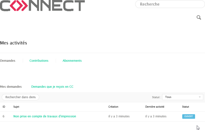 Par ailleurs, vous pouvez à tout moment vous rendre dans le portail Connect pour suivre l'évolution de vos demandes.