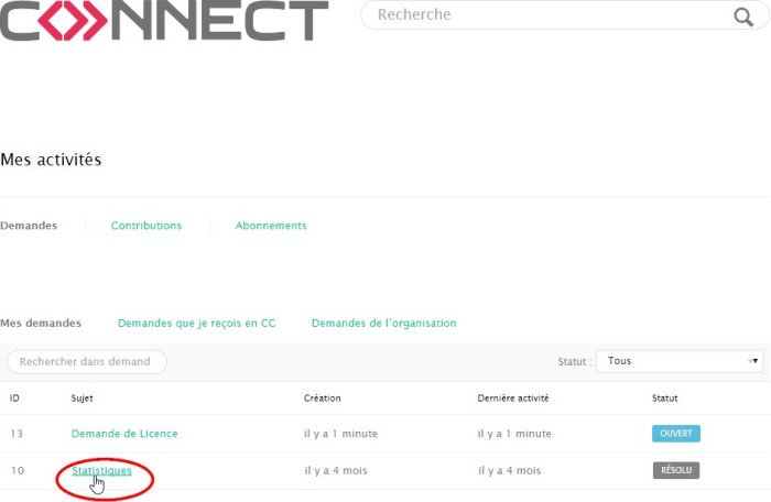 dans la liste de vos demandes, cliquez sur la demande résolue :