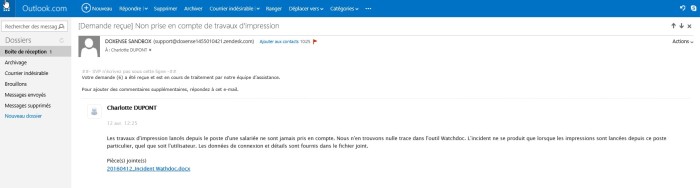 La demande envoyée fait l'objet d'une notification par e-mail, de même que chaque réponse qui y est apportée par l'équipe Support : vous êtes ainsi informé en permanence du traitement accordé à votre demande.