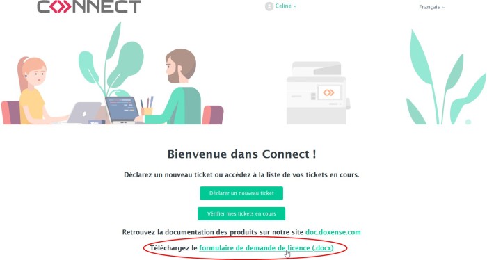 Depuis l'interface Bienvenue dans Connect, cliquez sur le lien Téléchargez le formulaire de demande de licence :