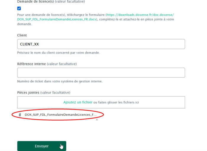 Ajoutez en pièce jointe le formulaire de demande de licence complété (au format .pdf ou .doc).