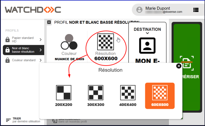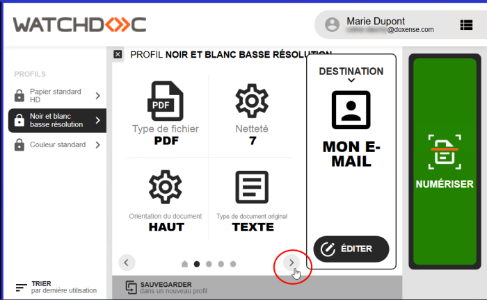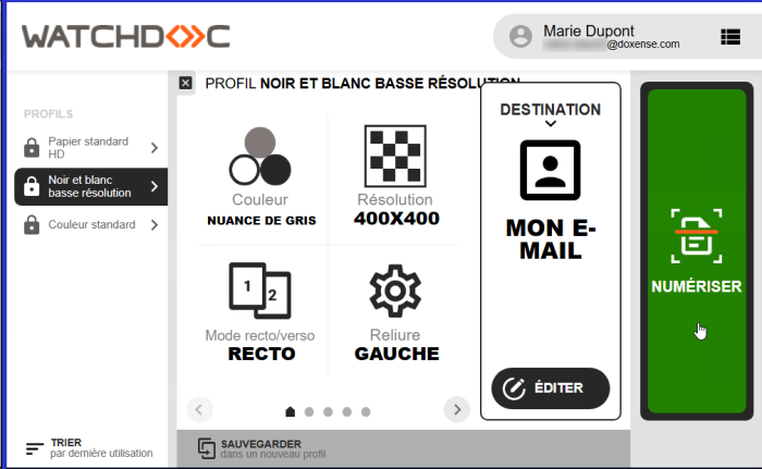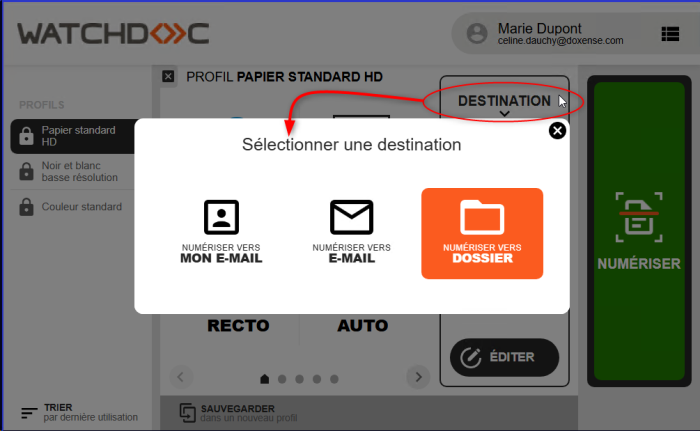 Si les paramètres du profil conviennent, cliquez sur NUMERISER pour lancer la numérisation.
