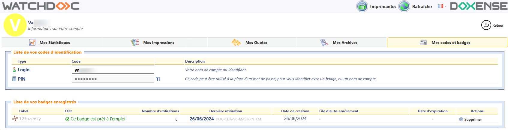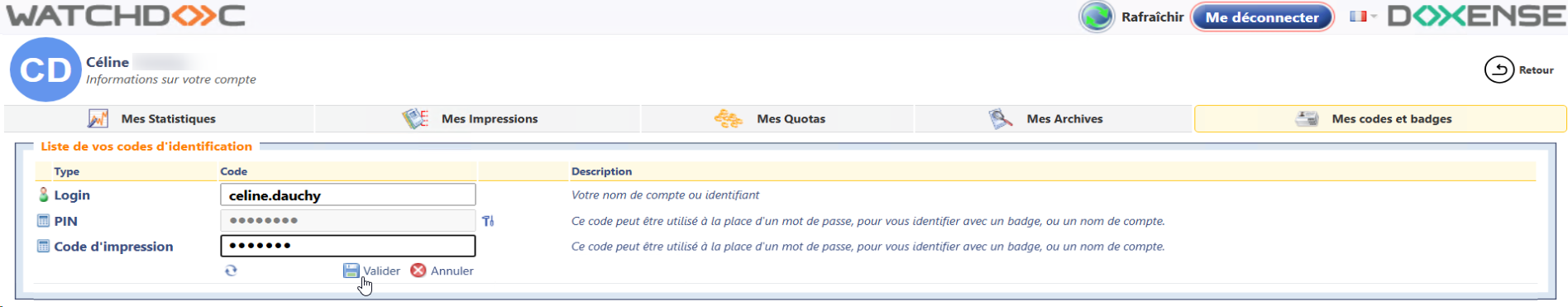 S'il s'agit d'un code PIN ou d'un code d'impression, vous pouvez le définir depuis la page "Mes codes et badges" ;