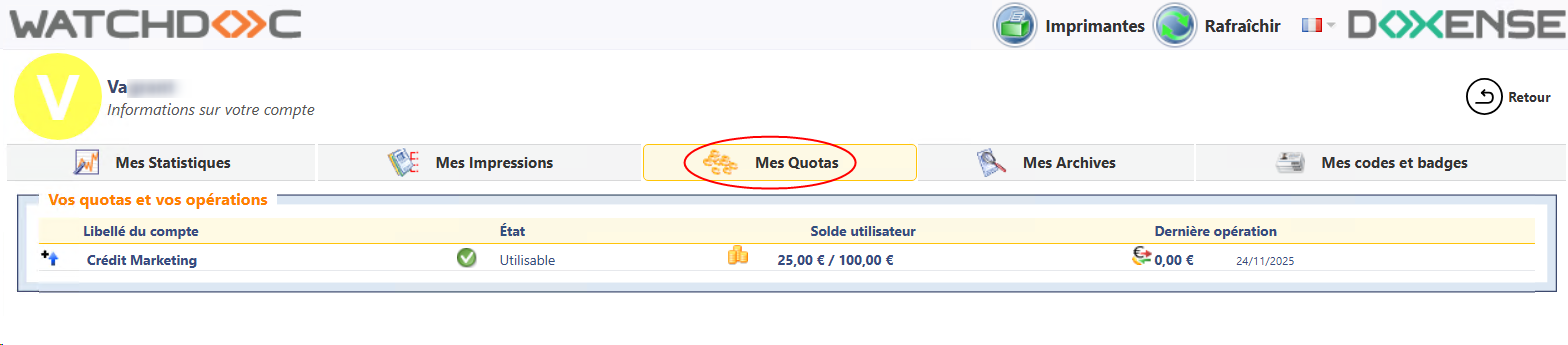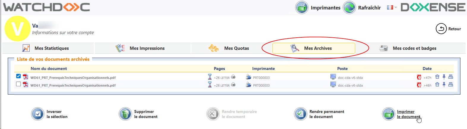 Watchdoc - Utilisateur - Consulter la page "Mon compte"