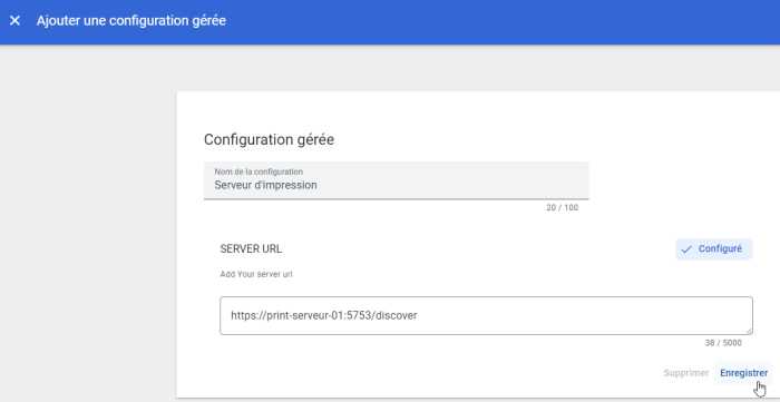 Dans l'interface Ajouter une configuration gérée, saisissez :