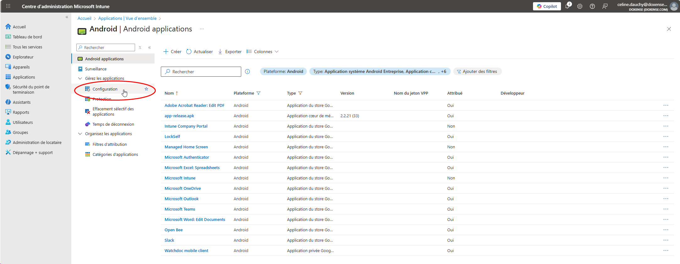 soit en la configurant dans votre EMM Microsoft Intune de sorte qu'elle soit mise à disposition de vos utilisateurs depuis leur environnement Intune professionnel ;