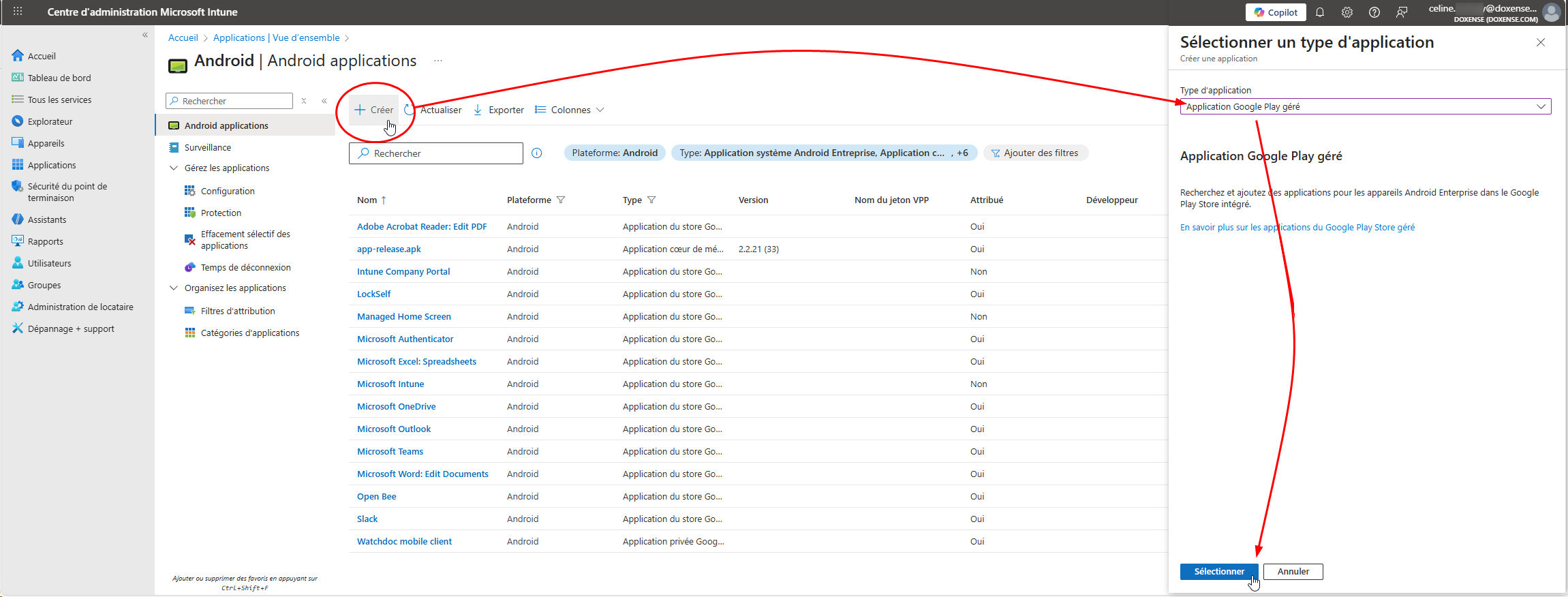 dans la fenêtre de droite, sélectionnez le type d'application Application Google Play géré, puis cliquez sur Sélectionner ;