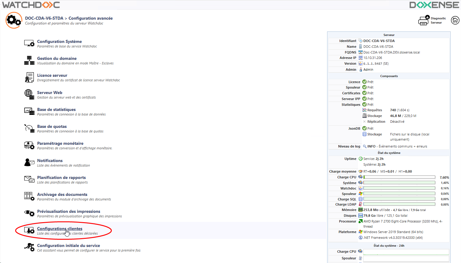 connectez-vous à l'interface d'administration de Watchdoc ;
