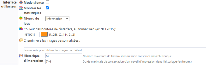 durée maximale de conservation : indiquez, en heures, la durée maximale de conservation des travaux affichés dans l'historique (1 mois max.).