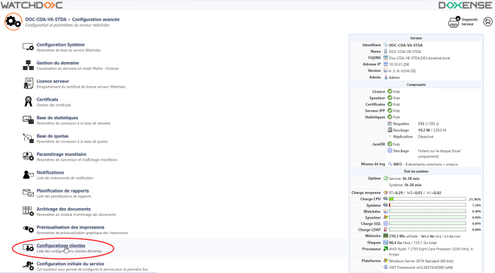 accédez à l'interface d'administration de Watchdoc en tant qu'administrateur ;