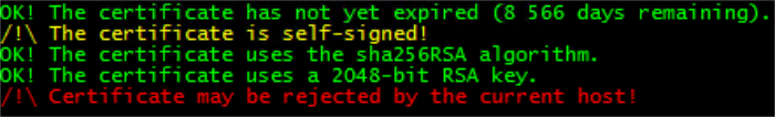 Algorithme de signature : si l'algorithme employé est reconnu comme obsolète, un avertissement est affiché ;