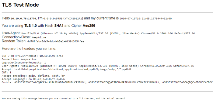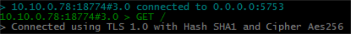 Connected using TLS 1.0 with Hash SHA1 and Cipher Aes256