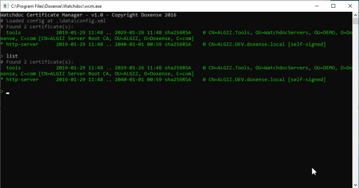 Certificat auto-signé : l'émetteur a signé lui-même le certificat. Ceci est le comportement par défaut de Watchdoc ;