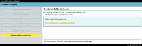 Une fois les 2 fichiers de licence téléchargés, pour pouvez quitter le site Canon®.