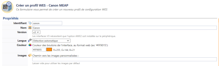 Version : sélectionnez la version du WES. Pour la v3, vous pouvez personnaliser l'interface en choisissant la couleur des boutons et des images en fonction de votre identité graphique :