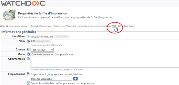 N.B : après modification d'un profil WES déjà installé sur une file d'impression, il est nécessaire de redémarrer la file afin qu'elle prenne en compte les modifications du profil.