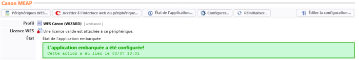 Si le WES est correctement installé, un message de succès s'affiche dans la section Etat de l'interface de configuration du profil WES :