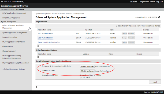 dans l'interface Service Management Service > menu Administration système, cliquez sur l'entrée Gestion d'applications système évoluées ;