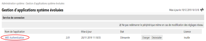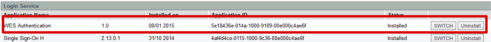 L'application WES Authentication s'affiche dans la liste du haut de la page.