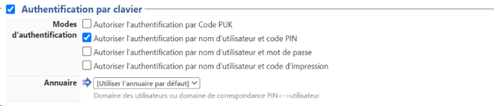 Annuaire : dans la liste, sélectionnez l'annuaire qui doit être interrogé lors de l'authentification par clavier, en fonction de l'endroit où sont enregistrés les utilisateurs.