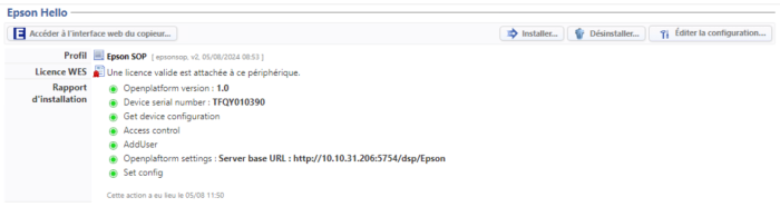 Lancez une impression et rendez-vous sur interface du périphérique pour vérifier que le WES fonctionne.