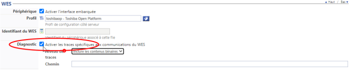dans la section WES > Diagnostic, cochez la case Activer les traces ;
