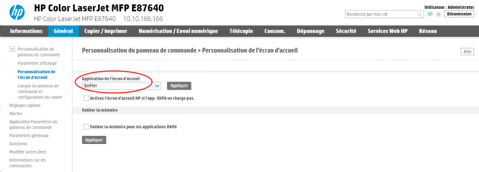 authentifiez-vous en tant qu'administrateur dans le périphérique d'impression :