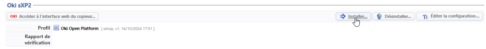 Une fois le profil WES activé sur la file, dans l'interface Propriétés de la file apparaît la section Oki sXP2 ou OpenPlatform. Cette section comporte plusieurs boutons :