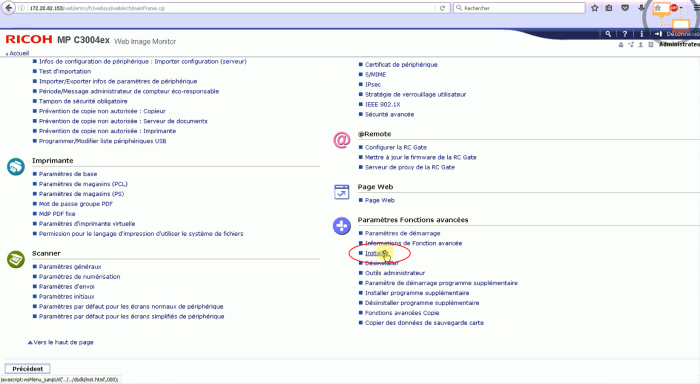 L'installation manuelle du WES est effectuée à partir de Web Image Monitor, le site web d'administration du périphérique Ricoh. Vous pouvez y accéder de deux manières différentes :