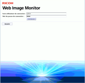 vous accédez à Web Image Monitor, le site web d'administration du périphérique Ricoh®.
